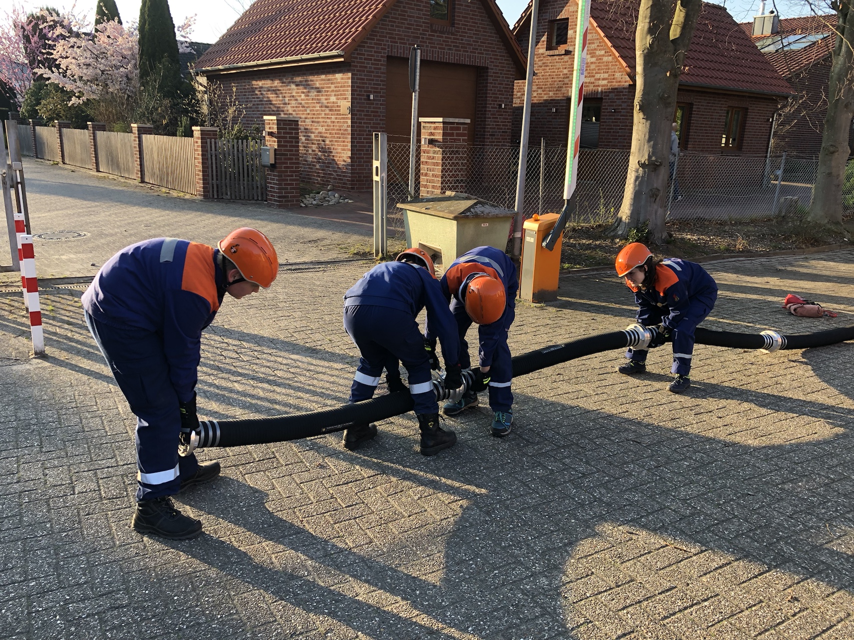 Auch Schnelligkeitsübungen mit dem Feuerwehrschlauch, stehen bei uns auf dem Programm, denn hier zählen Tempo, Technik und Teamwork gleichermaßen!