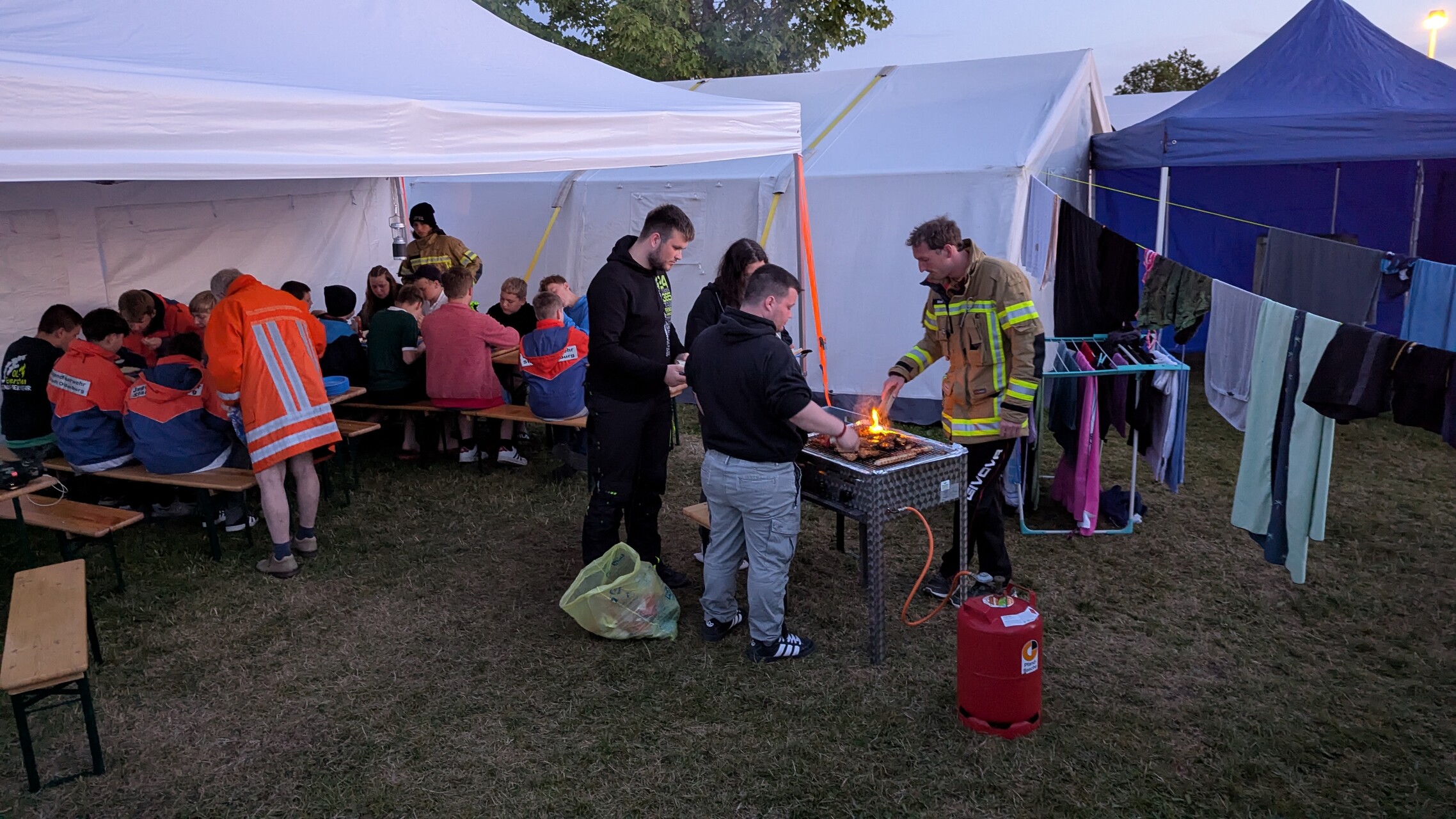 Gemeinsam mit der ganzen Jugendfeuerwehr verbringst du eine unvergessliche Woche in großen Gemeinschaftszelten – natürlich nicht auf dem Boden, sondern gemütlich auf Feldbetten.